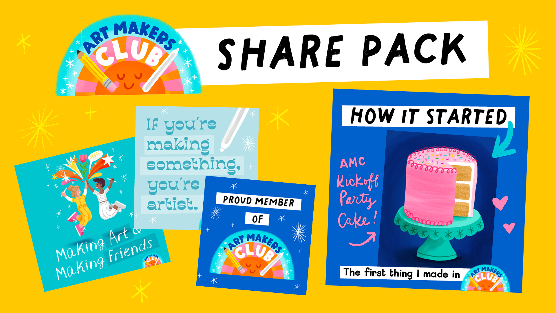 Celebrate your creative journey with the Art Maker’s Club Share Pack! Includes ready-to-use graphics, quote cards, and editable Procreate templates so you can highlight your progress, share your story, and rep the Club on social media.