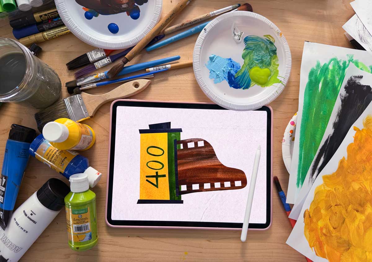 In this project, you’ll create a set of painted papers, then bring them into Procreate and use them as a digital collage to build your illustration.