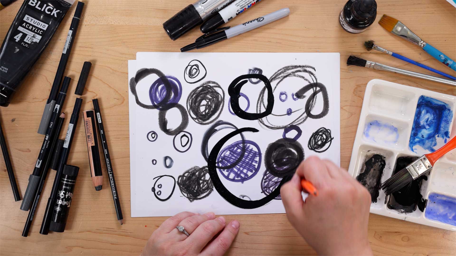 The focus is on how those textures interact with your shapes. You’ll see how something pretty rough or even a little chaotic on paper can end up feeling surprisingly cohesive once you start layering and adjusting it digitally. This is where you start to understand how analog and digital work together.