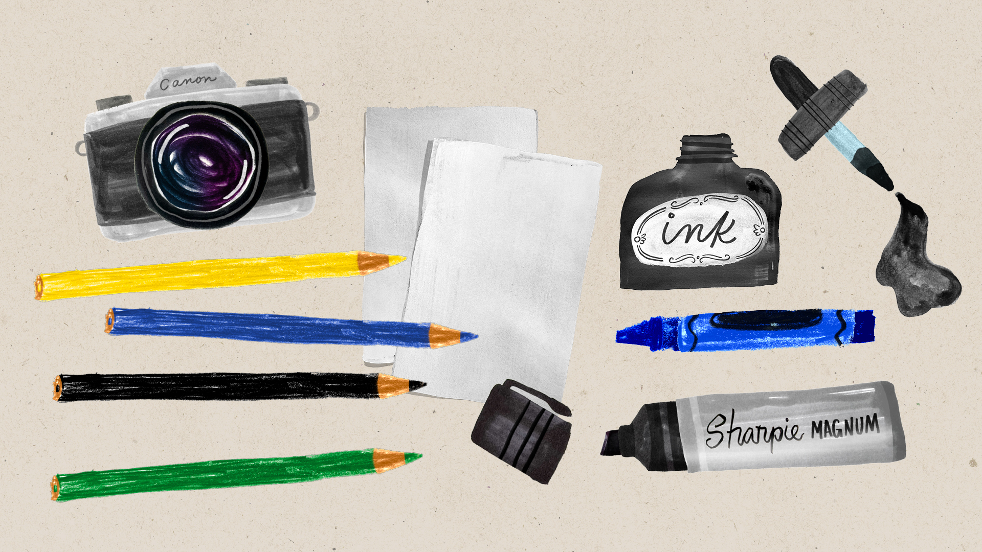 All you need to take this class is an iPad with Procreate, and some basic art supplies you probably already have: cheap craft paint, crayons, pencils, printer paper, it all works!