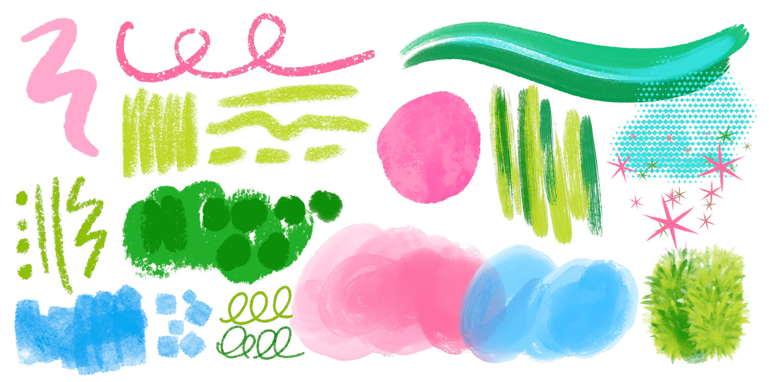 Bonus Brushes Vol. 4 is a playful set of 20 Club-exclusive Procreate brushes designed to spark creativity. From gritty pencils and dry inkers to soft rollers, blobby textures, and bold shape-makers, each brush brings a unique feel. Use them to sketch, fill, texture, and explore new styles... these bonus brushes are made to surprise and delight.