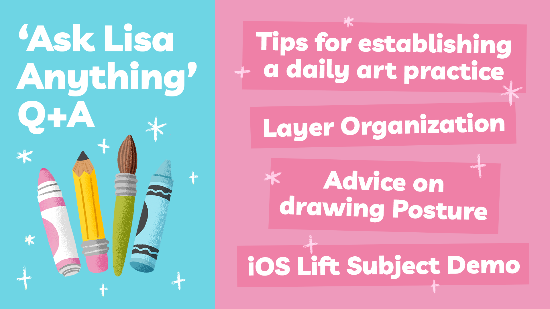 Do you have something you've always wanted to ask me? Here's your chance! Ask me about life and creativity, your burning Procreate questions, being a small business owner and mother, anything goes! Submit questions beforehand or pick my brain live about anything you want!