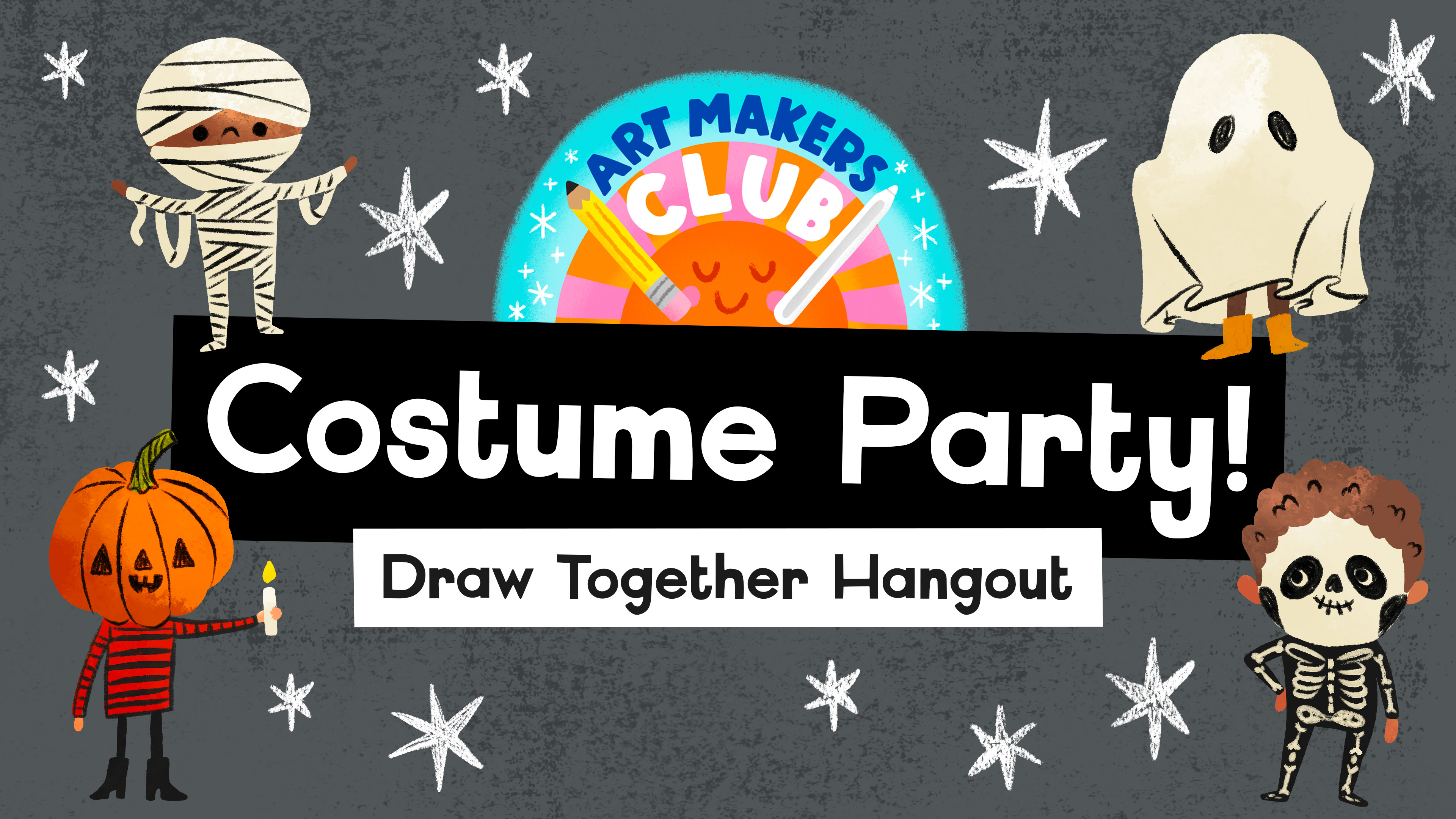 Get ready for a Halloween-inspired creative adventure at our Draw Together Hangout Costume Party! We invite you to join us in drawing a costume – it could be your own, one you wish to wear, or even a unique design you found online. As always, feel free to bring your own projects or choose from our Brushtober drawing prompts. The goal is to connect with fellow artists worldwide and enjoy the fun, relaxed atmosphere while celebrating Halloween together! If you'd like some costume drawing practice, check out my Cute Characters in Costume tutorial.