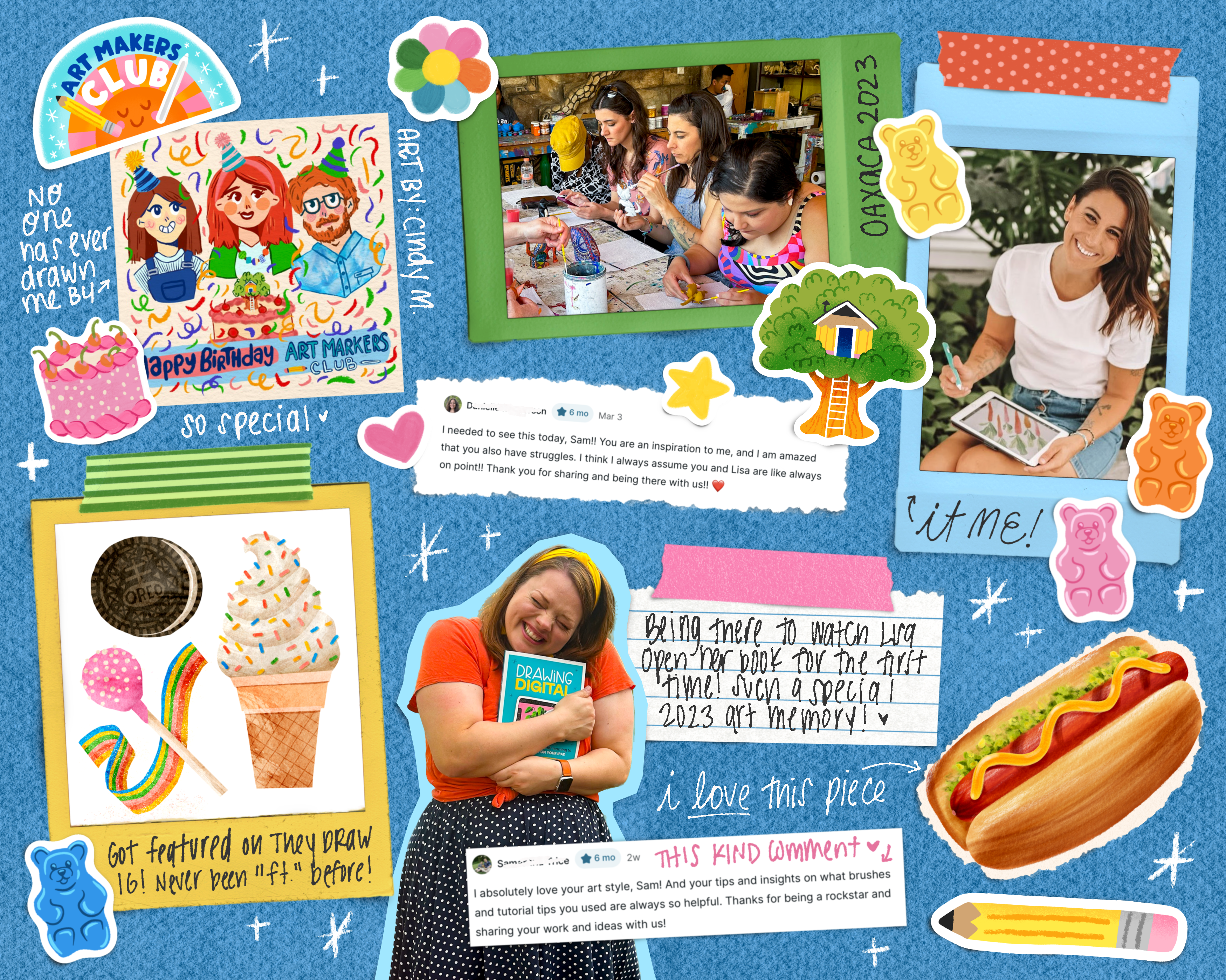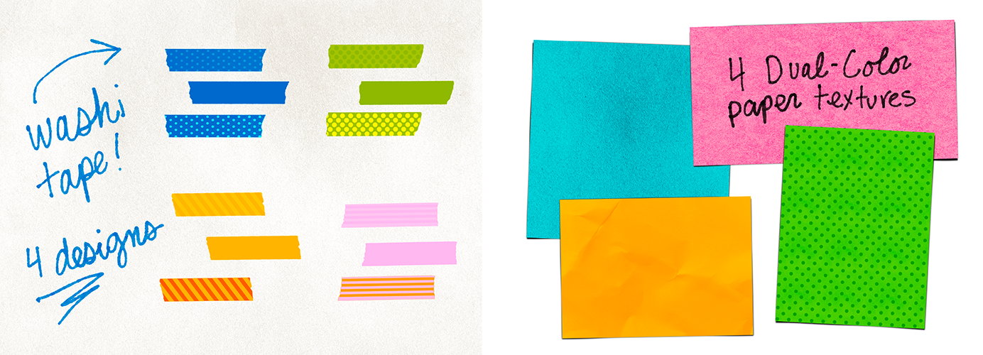 Create stunning digital scrapbook pages in Procreate! Includes a Procreate brush set full of Washi tape stamp brushes, seamless paper-texture brushes, and torn-edge paper brushes. Plus photo frames, sticker sheets, and three glitter papers for a sparkly touch of magic! Document your memories in our Scrapbooking in Procreate tutorial.