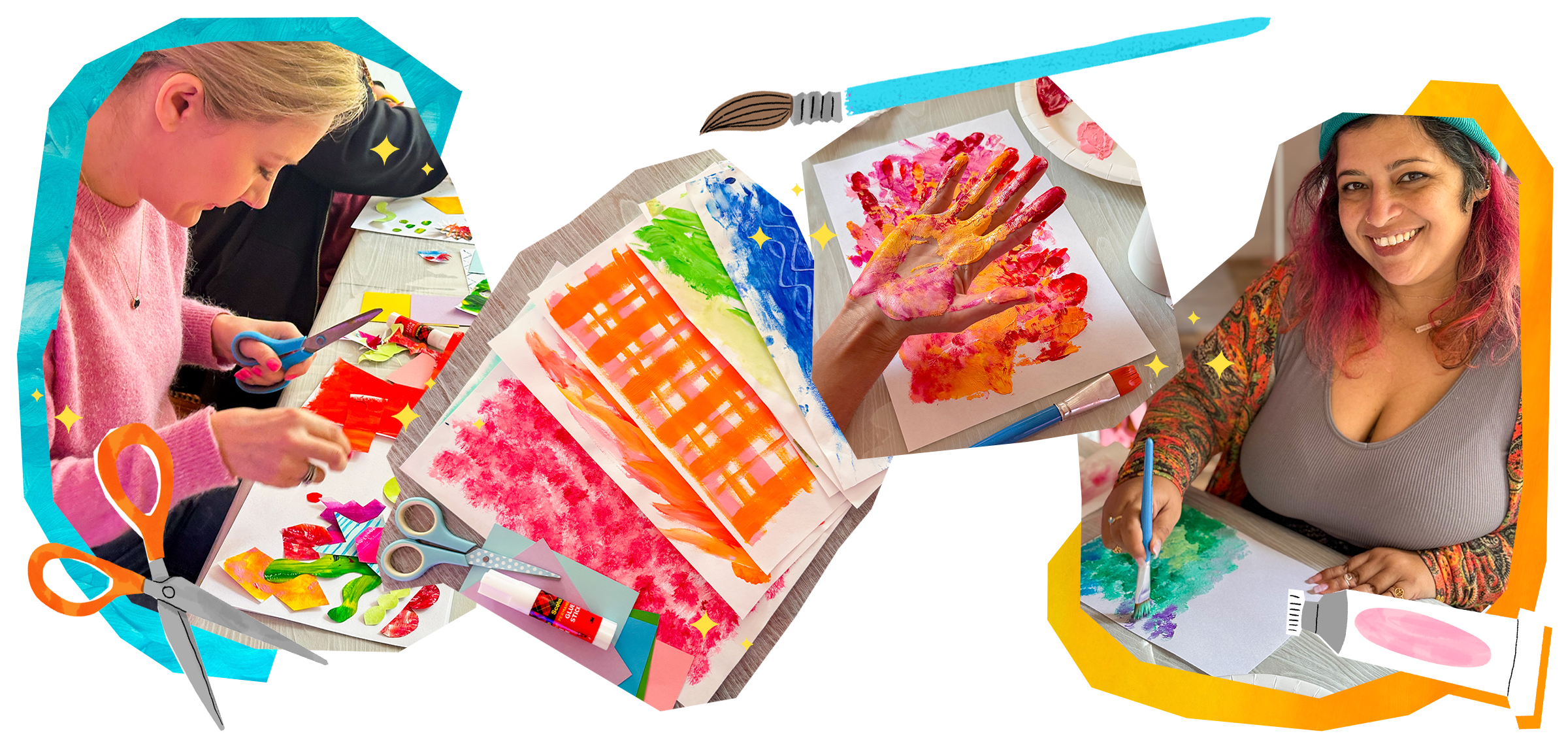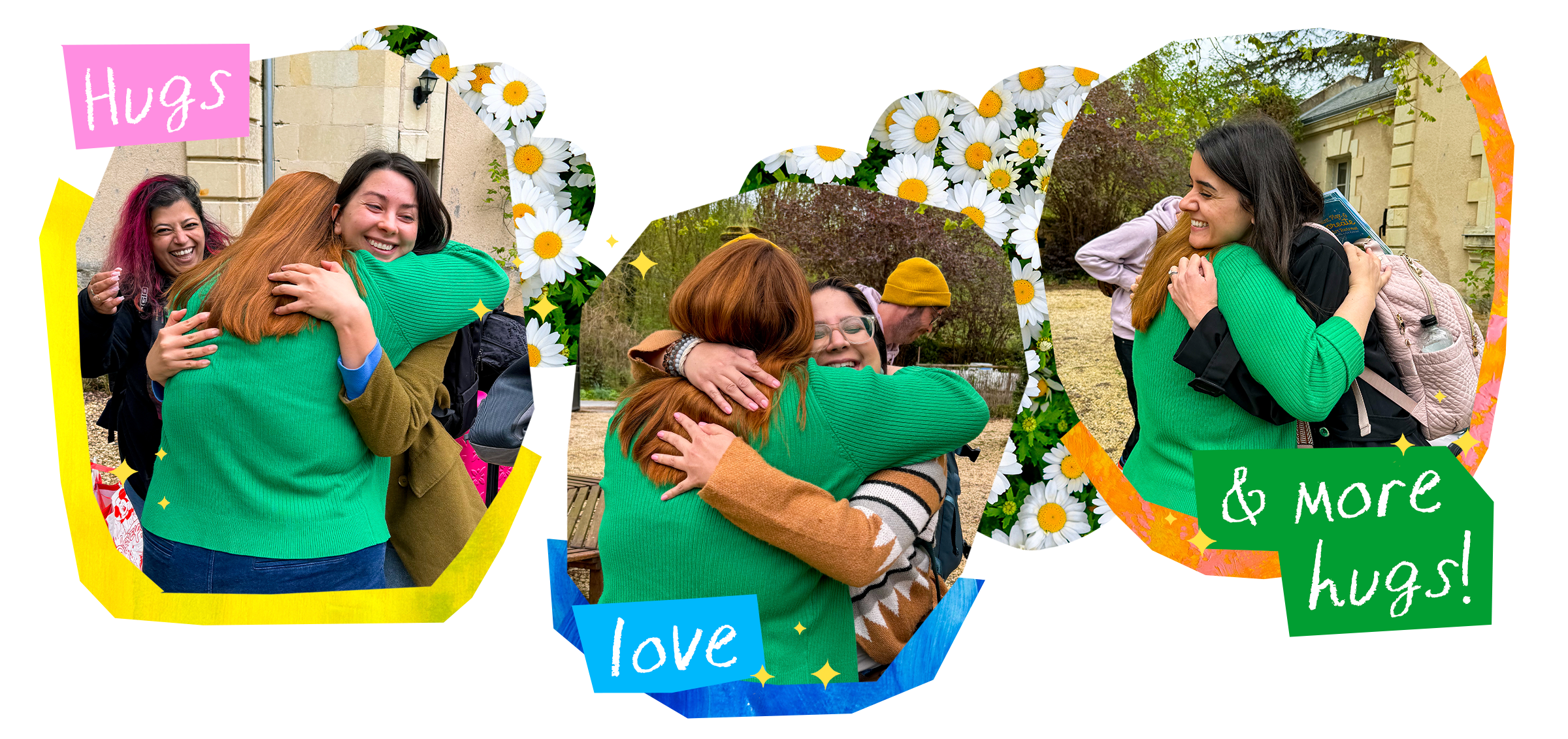 Every day after a delicious breakfast in the chateau, we’d all meet in the studio for a morning of hands-on, invigoratingly freeing art lessons. With the goal of tapping into our child-like sense of wonder and creativity, we abandoned all the rules and just had fun playing with paint, scissors, and glue while giggling and singling along to our new favorite playlist: Hardcore Bardcore. 🤣 These inhibition-free art exercises came to be some of our retreat attendees’ favorite and most cherished moments.