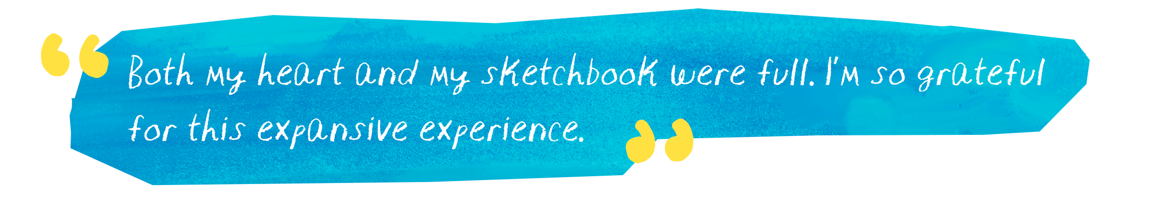 We welcomed artists of all skill levels, fostering an environment of collaboration, support, and mutual growth. The Chateau De La Vigne became a backdrop for spontaneous sketch sessions at dinner tables, mini-lessons in between coffee, and impromptu discussions about what it means to be an artist.