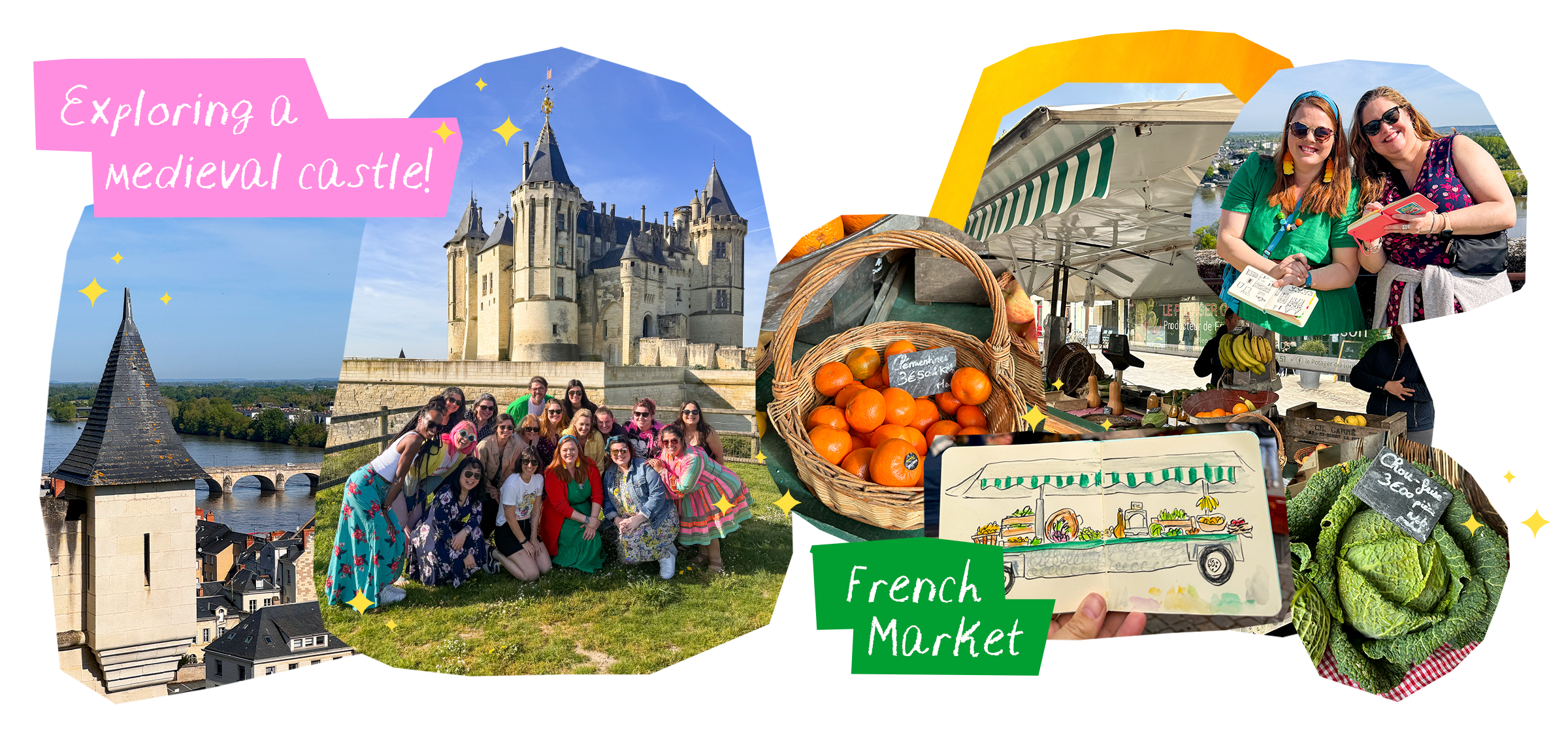 But the real star of our trip was the inspiring outing to Chateau de Saumur, a 900-year-old medieval castle nestled in the hills of Maine-et-Loire where we sketched whimsical castle details and toured the grounds of this historic infrastructure.