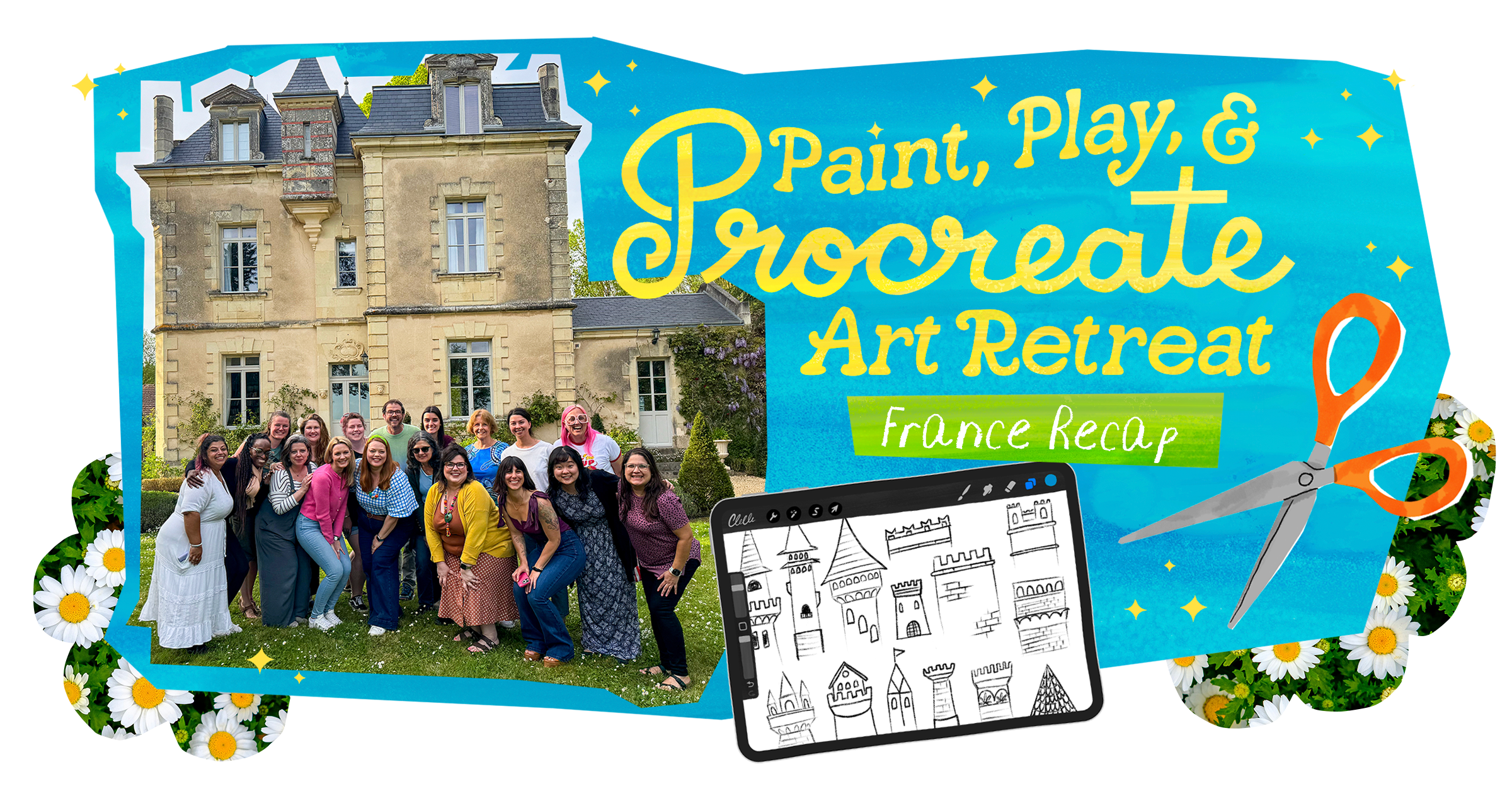 Following an invigorating morning of hands-on crafty creativity, we reconvened in the studio after lunch for a fun Procreate art lesson. I guided the retreat attendees through a variety of topics such as color theory and sketching objects from life, but the most cherished session was undoubtedly the Procreate Brush-Making lesson. For the first time ever, I shared my secret brush-making process, allowing attendees to create their very own personalized Procreate brush set. This intimate and personal experience enabled me to offer individualized attention and address any one-on-one questions they had, fostering a unique and memorable learning environment.
