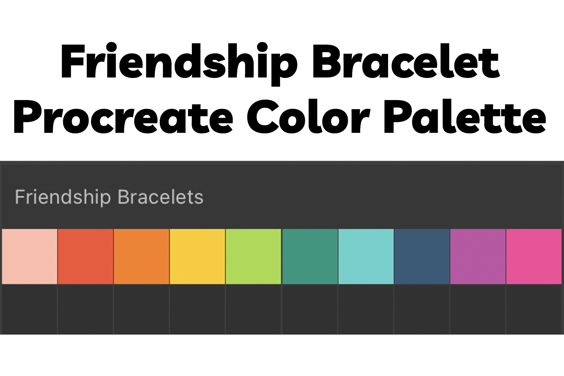 I've created a custom Friendship Bracelet color palette for you! No need to spend time toiling over picking the perfect colors - this palette is happy, bright, and cohesive. Perfect for creating joyful friendship bracelets.