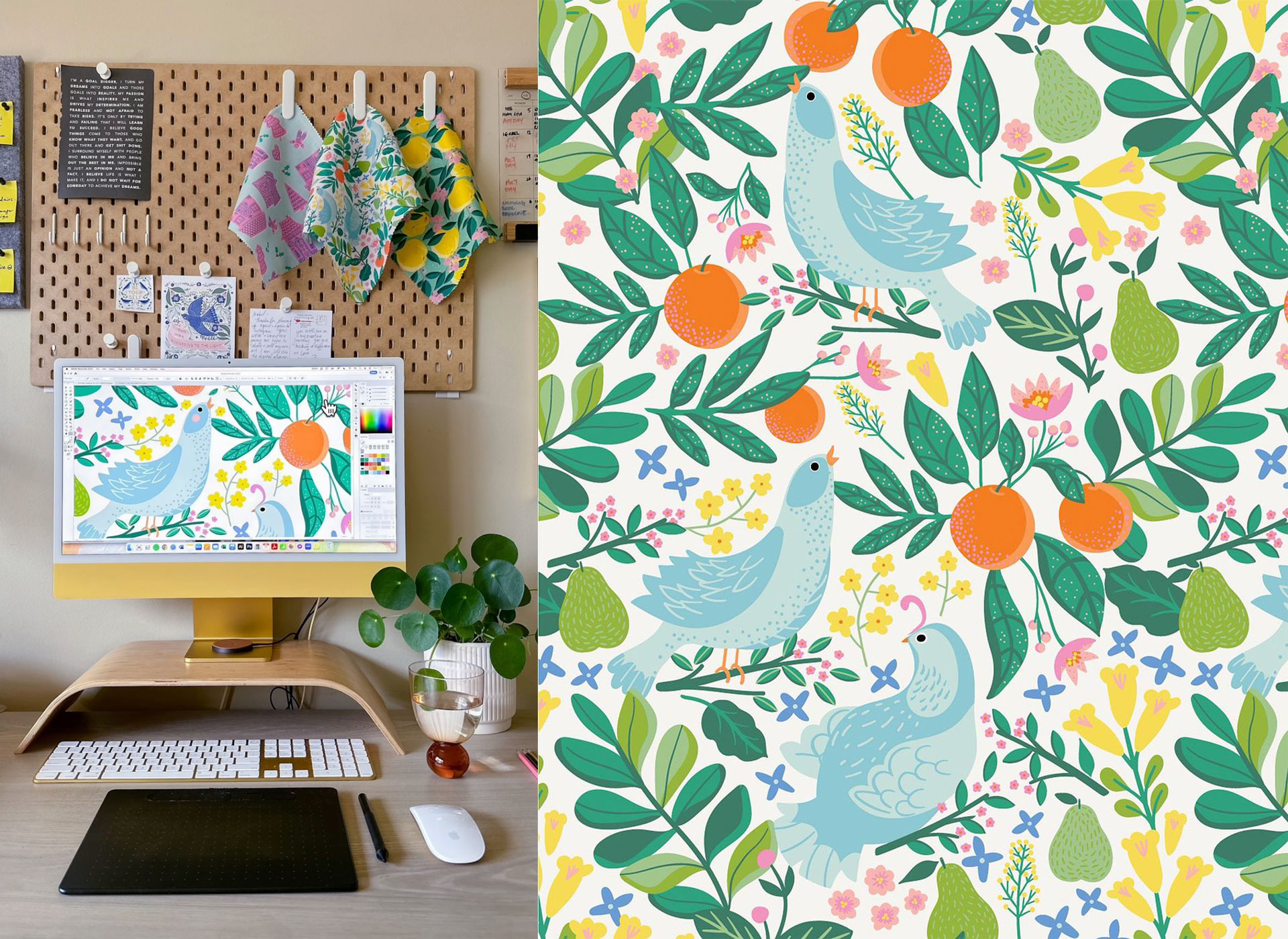 Mable Tan is a surface pattern designer, mom, wife, and multi-passionate creative who creates repeat patterns in the surface design industry for clients like Urban Outfitters, Nordstrom, and Target. Mable has been selling her art on Etsy and print-on-demand platforms for about 10 years and in 2018 fell in love with creating repeating patterns. For 12 months Mable worked on refining her skills during her son's nap times, late into the night, and on weekends.