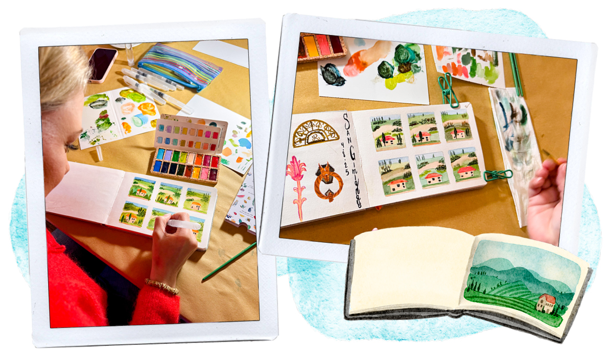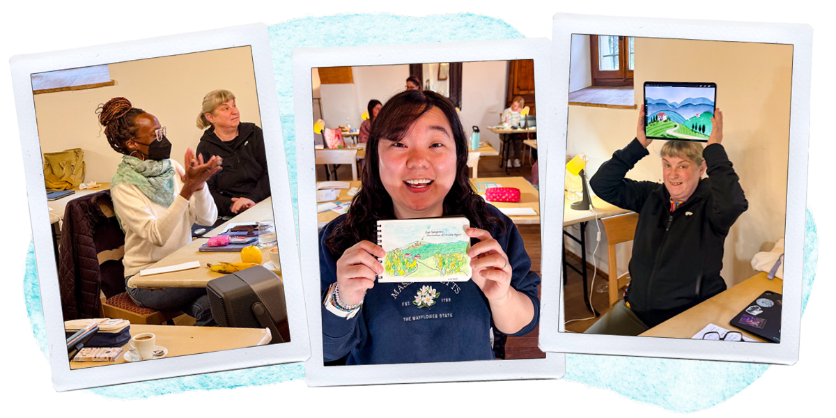 In between projects, sketchbooks were never far. Whether we were eating lunch, exploring a town, or lounging in the sun, spontaneous painting moments popped up everywhere. That playful, creative energy flowed through the whole week.