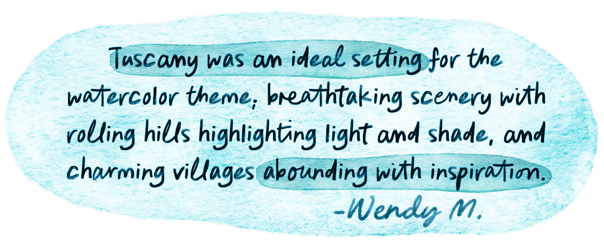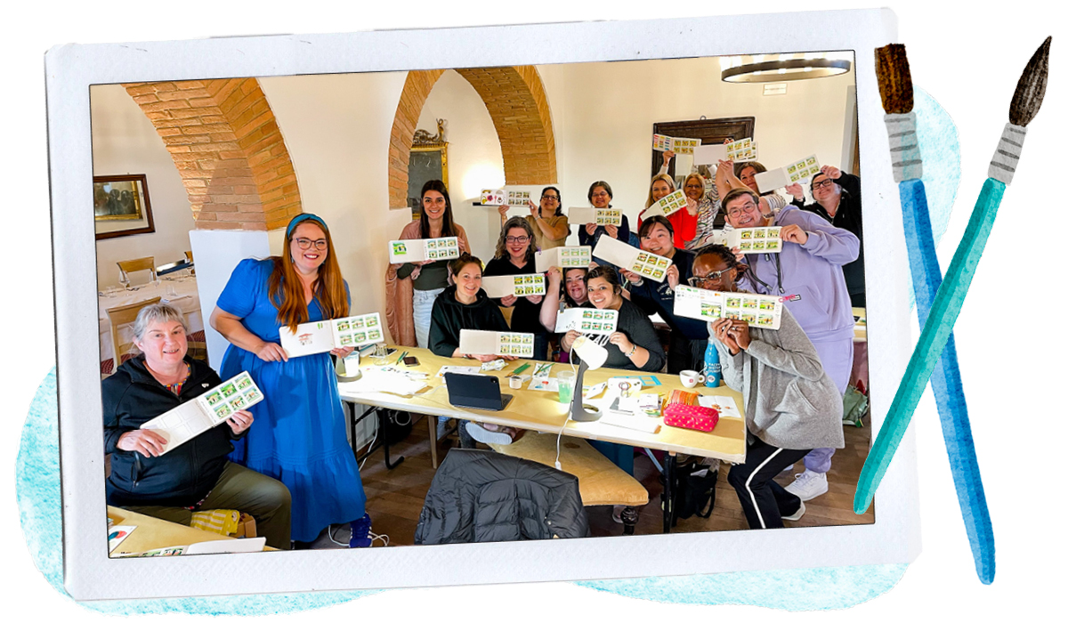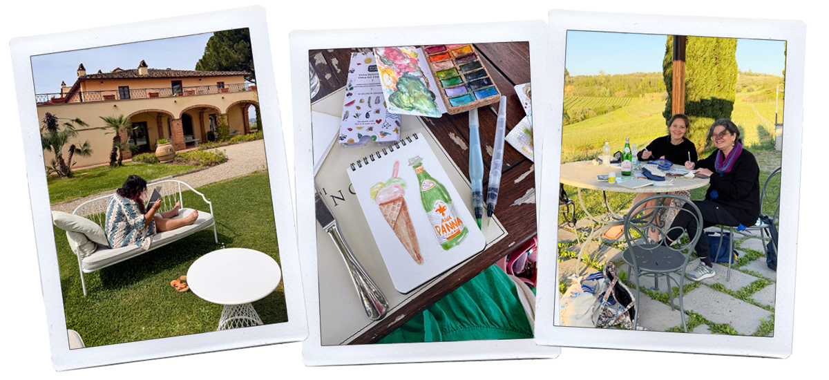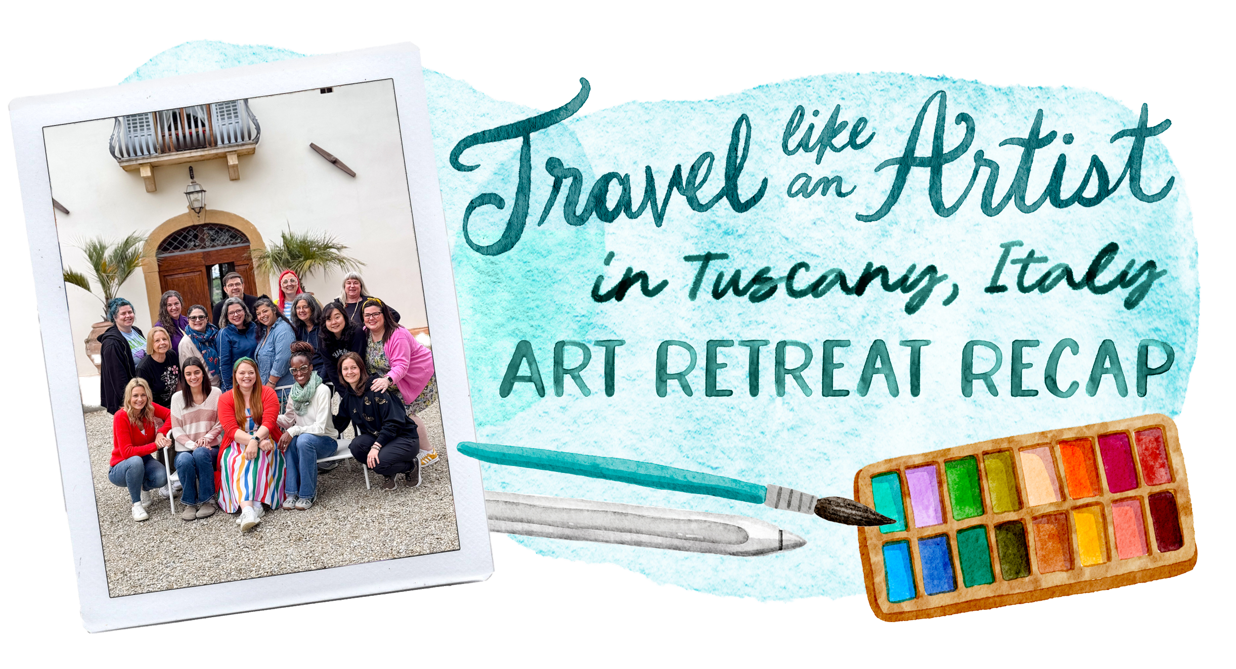 This spring, I had the joy of leading another Art Retreat, and it was truly something special. We spent over a week in stunning Italy, making art, soaking in beautiful views, eating amazing food, and connecting with each other in the most magical setting. Picture rolling hills, charming little towns, sketchbooks everywhere, and a whole lot of laughter.