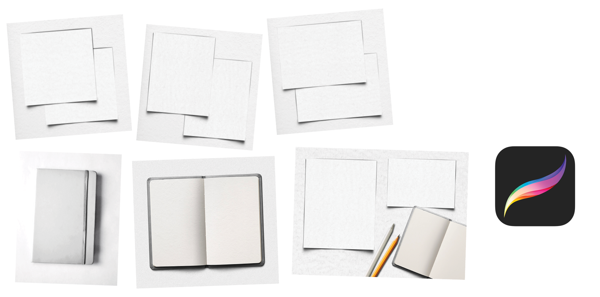 To help you present your work like a pro, you’ll get six ready-to-use mockup templates you can use right in Procreate—featuring sketchbook pages, postcards, and notebook covers. Just drop in your artwork, adjust colors, and explore different layout options with ease.