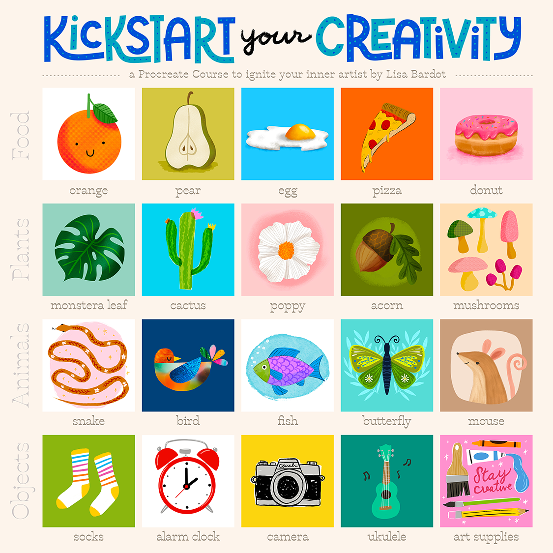 Kickstart Your Creativity with Procreate is a guided drawing course designed to help you start making art again in Procreate.