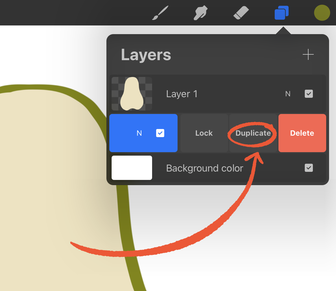 why draw something twice when you can duplicate? To duplicate a layer, open the layers panel, then swipe to the left over a layer and choose 'Duplicate'.