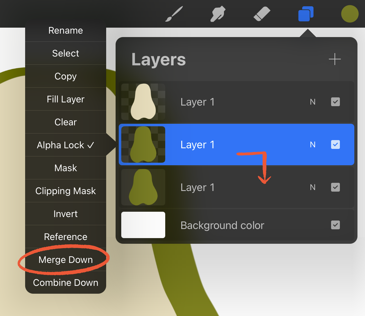 There are many reasons you may want to merge layers. There are two ways to merge layers together in Procreate: